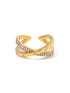 Vergulde, edelstalen ring met zirkonia steentjes. De ring is one size en verstelbaar.